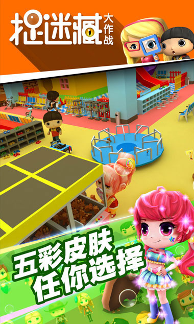 《捉迷藏大作战》是一款新奇的联网游戏。游戏以现实的捉迷藏游戏为蓝本,化身场景里的奇妙道具,进行隐匿和躲藏,真真假假,虚虚实实!语音交流,实时弹幕,边玩边吐槽!和小伙伴一起开黑,随时随地上手,回味童年的乐~